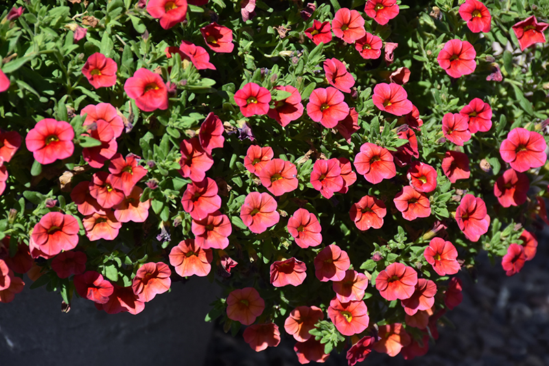 Conga™ Red Calibrachoa is a fine choice for the garden, but it is also a good selection for planting in outdoor containers and hanging baskets. Because of its trailing habit of growth, it is ideally suited for use as a 'spiller' in the 'spiller-thriller-filler' container combination; plant it near the edges where it can spill gracefully over the pot. Note that when growing plants in outdoor containers and baskets, they may require more frequent waterings than they would in the yard or garden.