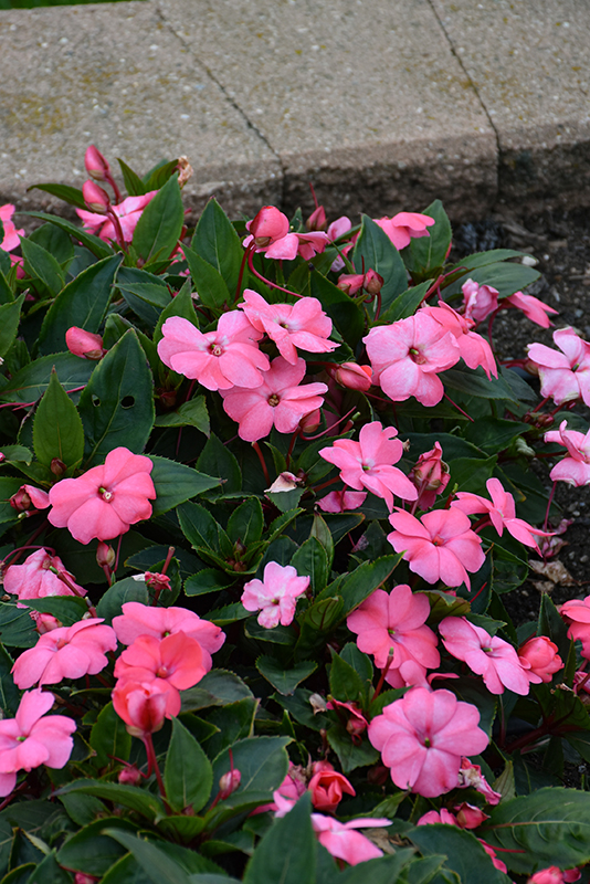 Solarscape™ XL Salmon Glow Impatiens will grow to be about 11 inches tall at maturity, with a spread of 20 inches. When grown in masses or used as a bedding plant, individual plants should be spaced approximately 14 inches apart. Its foliage tends to remain low and dense right to the ground. This fast-growing annual will normally live for one full growing season, needing replacement the following year.
