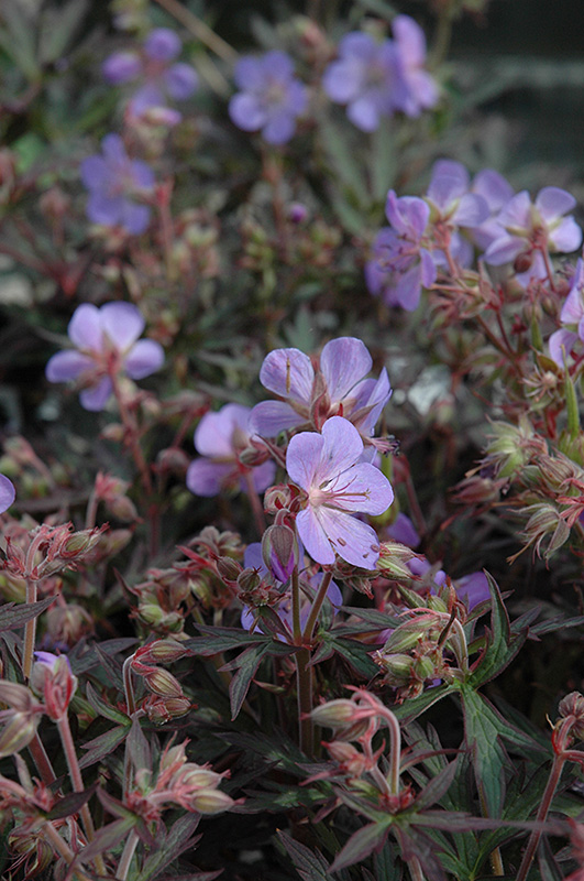 Black Beauty Cranesbill will grow to be about 18 inches tall at maturity, with a spread of 24 inches. When grown in masses or used as a bedding plant, individual plants should be spaced approximately 20 inches apart. Its foliage tends to remain dense right to the ground, not requiring facer plants in front. It grows at a medium rate, and under ideal conditions can be expected to live for approximately 10 years. As an herbaceous perennial, this plant will usually die back to the crown each winter, and will regrow from the base each spring. Be careful not to disturb the crown in late winter when it may not be readily seen!