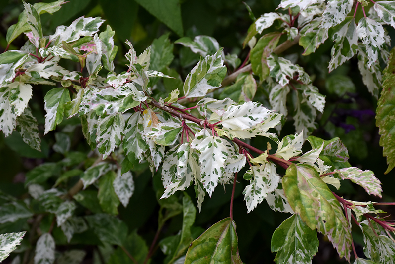 A rare, variegated selection featuring vivid green and white foliage as the backdrop for stunning red blooms; makes an ideal hedge, screen, or background planting; do not allow to dry to wilting point