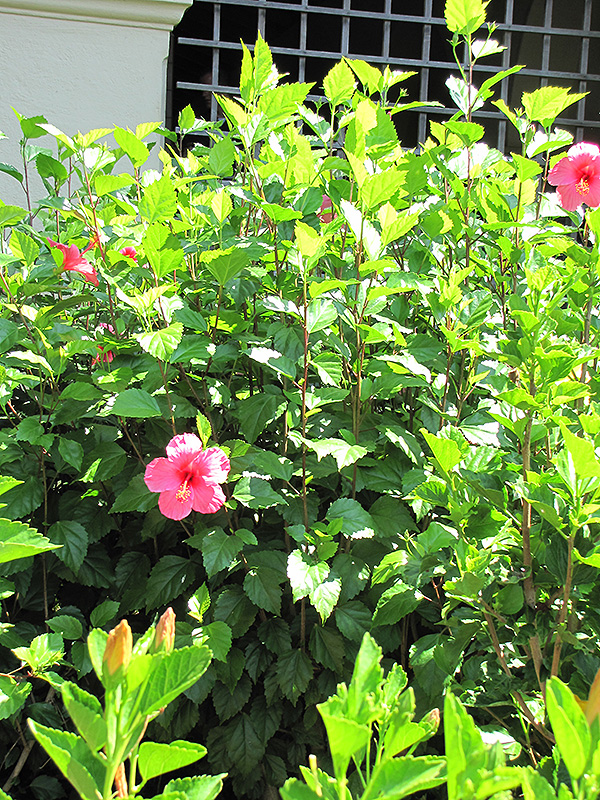 This pretty variety presents huge, bright pink blooms with a blush of salmon and red centers; a well branched, bushy habit makes it an ideal hedge, screen, or background planting; do not allow to dry to wilting point; easy to care for