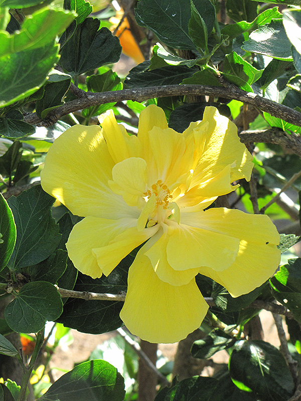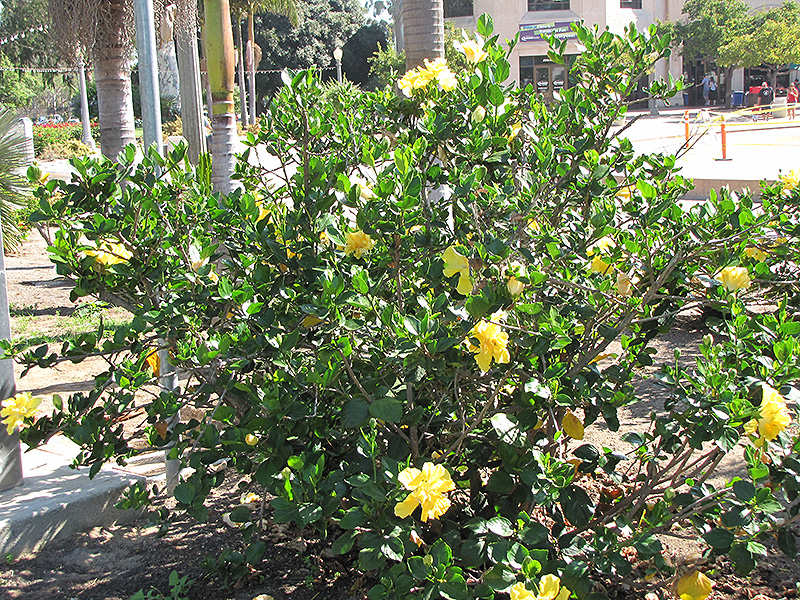 This showy selection presents large, bright yellow ruffled blooms; a well branched, bushy habit makes it an ideal hedge, screen, or background planting; do not allow to dry to wilting point; easy to care for