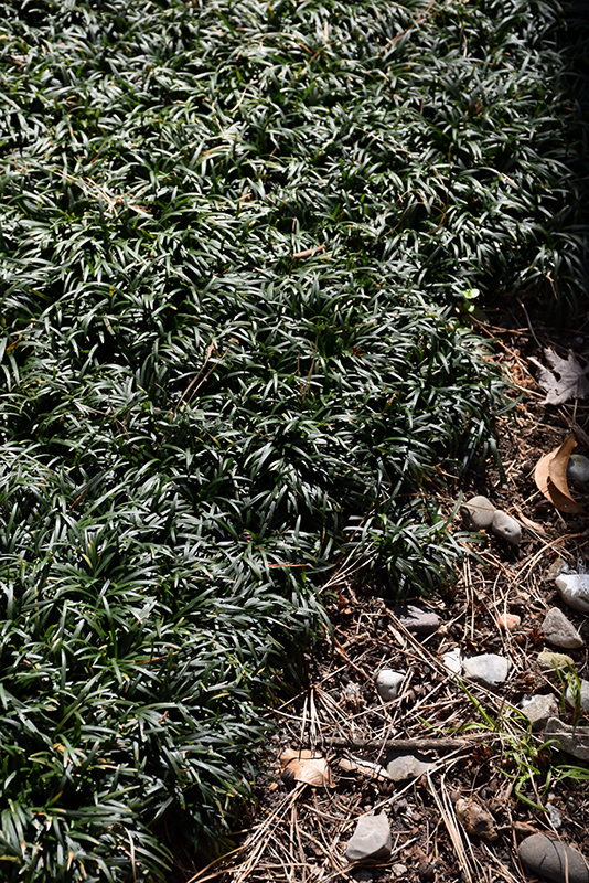 A dense carpet of narrow, refined, dark-green foliage; tiny, pale lavender flowers and following berries are often hidden from view; an effective, rich groundcover for shady areas; not actually a grass but more closely related to lilies