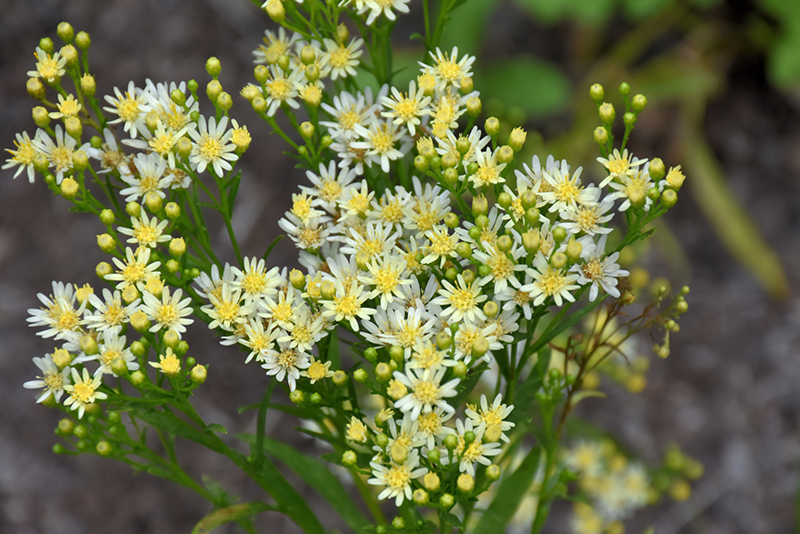 Sugar Kisses Goldenrod has masses of beautiful ray-like plumes of white flowers with yellow eyes at the ends of the stems from late summer to late fall, which are most effective when planted in groupings. Its narrow leaves remain green in colour throughout the season.