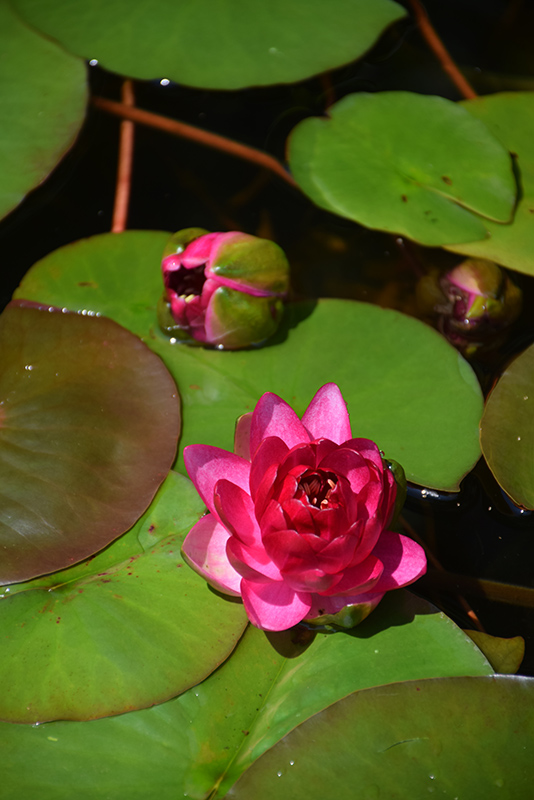 Manee Red Hardy Water Lily will grow to be about 14 inches tall at maturity, with a spread of 5 feet. Its foliage tends to remain dense right to the ground, not requiring facer plants in front. It grows at a fast rate, and under ideal conditions can be expected to live for approximately 10 years. As an evegreen perennial, this plant will typically keep its form and foliage year-round.