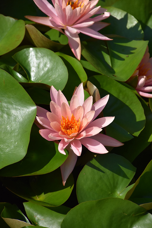 An elegant selection, presenting pale peach blooms with orange-yellow centers; attractive green leaves are lightly speckled in burgundy; very free flowering all season; a beautiful addition to your pond; easy to care for; water lilies dislike moving water