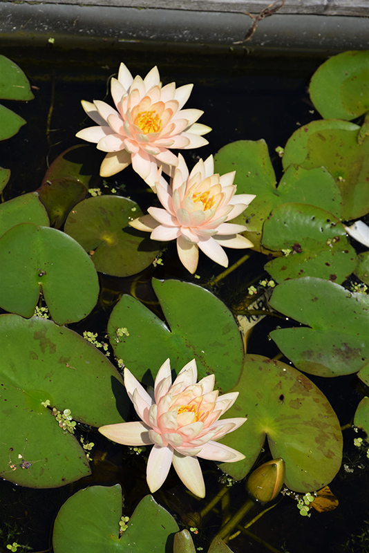 Peach Glow Hardy Water Lily is a fine choice for the garden, but it is also a good selection for planting in outdoor pots and containers. Because of its spreading habit of growth, it is ideally suited for use as a 'spiller' in the 'spiller-thriller-filler' container combination; plant it near the edges where it can spill gracefully over the pot. Note that when growing plants in outdoor containers and baskets, they may require more frequent waterings than they would in the yard or garden. Be aware that in our climate, most plants cannot be expected to survive the winter if left in containers outdoors, and this plant is no exception. Contact our experts for more information on how to protect it over the winter months.