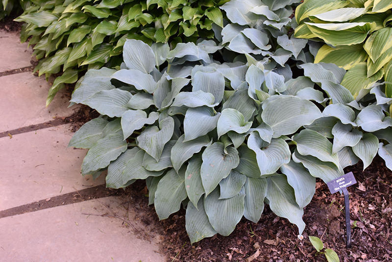 Blue Wedgewood Hosta will grow to be about 18 inches tall at maturity extending to 28 inches tall with the flowers, with a spread of 28 inches. When grown in masses or used as a bedding plant, individual plants should be spaced approximately 24 inches apart. Its foliage tends to remain dense right to the ground, not requiring facer plants in front. It grows at a medium rate, and under ideal conditions can be expected to live for approximately 10 years. As an herbaceous perennial, this plant will usually die back to the crown each winter, and will regrow from the base each spring. Be careful not to disturb the crown in late winter when it may not be readily seen!