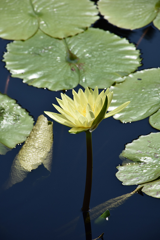 A wonderful selection producing large, fragrant, brilliant yellow flowers with golden centers; blooms rise above attractive, round, olive green foliage; water lilies dislike moving water; annual in colder climates