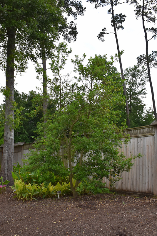 Tensaw Dahoon Holly will grow to be about 15 feet tall at maturity, with a spread of 10 feet. It has a low canopy with a typical clearance of 1 foot from the ground, and is suitable for planting under power lines. It grows at a medium rate, and under ideal conditions can be expected to live for 50 years or more. This is a dioecious species, meaning that individual plants are either male or female. Only the females will produce fruit, and a male variety of the same species is required nearby as a pollinator.