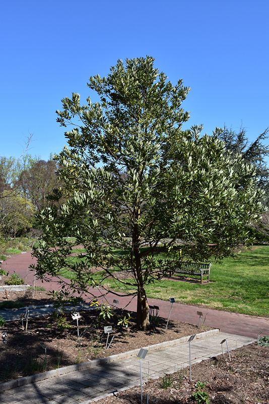 A native evergreen tree or large shrub found in coastal forests or other consistently moist habitats; inconspicuous yellow-green flowers are followed by fruit that is a food source for birds; lush foliage is deep green and glossy; a lovely accent tree