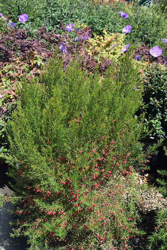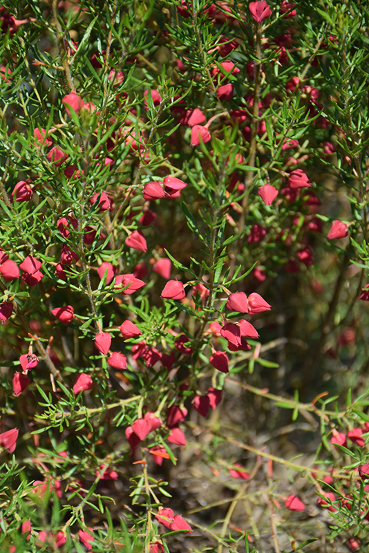 A dense, vigorous upright shrub with aromatic, soft dark green needle-like foliage; pink, lightly fragrant, bell shaped flowers that age to deep red appear in mid-spring; tolerates light frost well; great for beds or containers