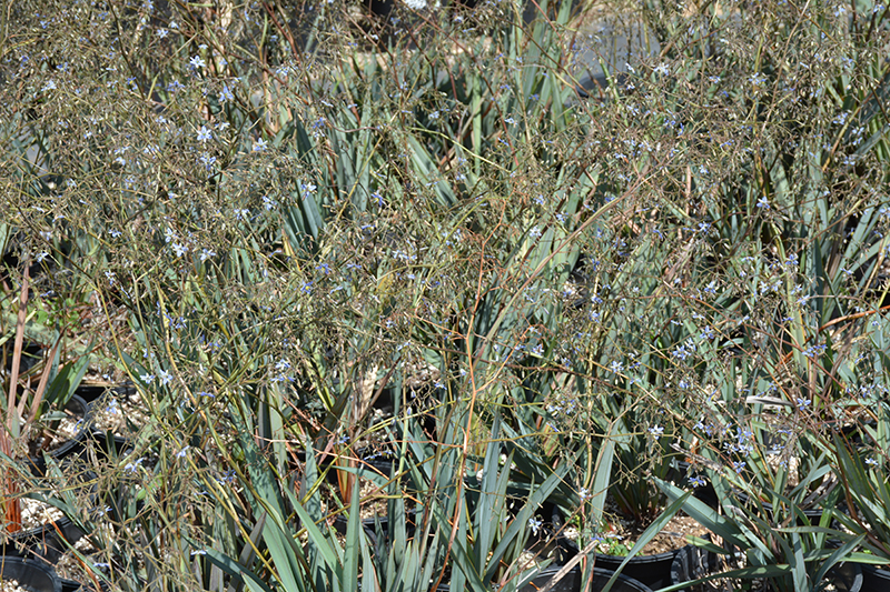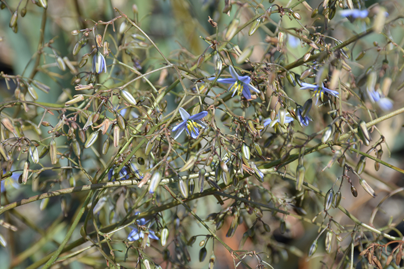 Blue Ghost Dianella's attractive sword-like leaves remain grayish green in colour with hints of silvery blue throughout the year on a plant with an arching habit of growth. It features delicate spikes of lavender star-shaped flowers with gold anthers rising above the foliage in mid spring. The flowers are excellent for cutting. It produces blue berries in early summer.