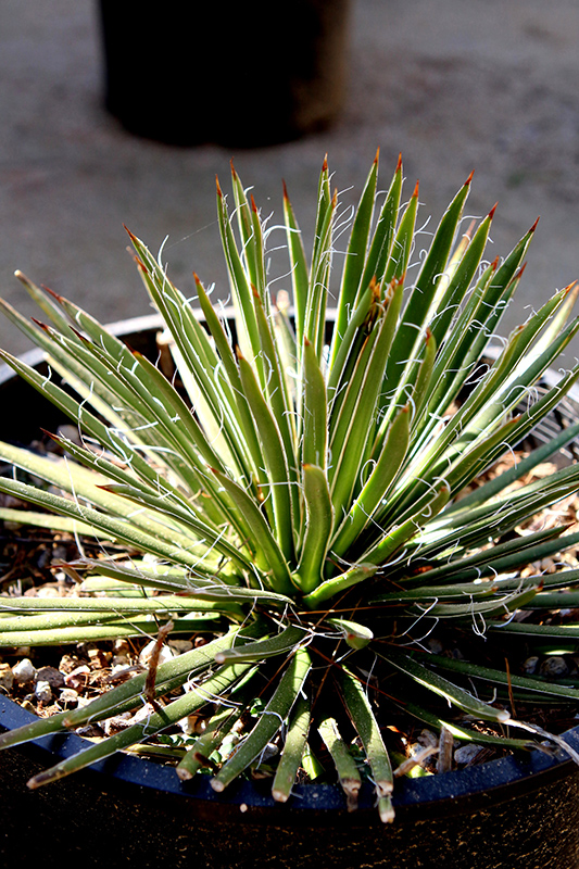 This outstanding cultivar has very narrow, needle tipped, dark green leaves adorned with showy white filaments, and set in a dense rosette; towering spikes with yellow flowers when rosettes mature; a great visual accent for rockeries or dry gardens