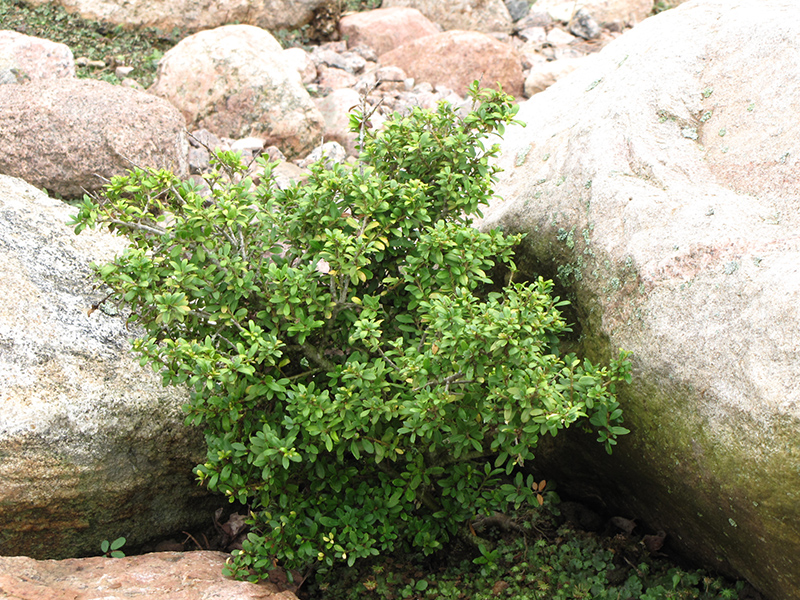 An absolutely stunning dwarf, dense and tightly compact evergreen shrub with tiny foliage and a wonderfully artistic habit of growth, glossy black berries if planted with a male variety; uses are endless, let your imagination run wild