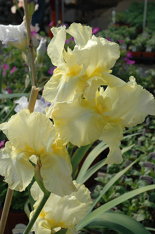 Summer Olympics Iris features bold buttery yellow flag-like flowers with yellow centers at the ends of the stems in mid spring. The flowers are excellent for cutting. Its sword-like leaves remain green in colour throughout the season.