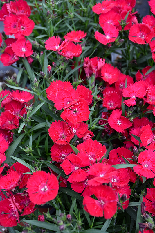 A distinctive selection that features spicy clove scented, vivid red blooms, covering mounds of fine foliage; an easy to grow variety that looks stunning in rock gardens, borders, beds or containers; excellent for cutting