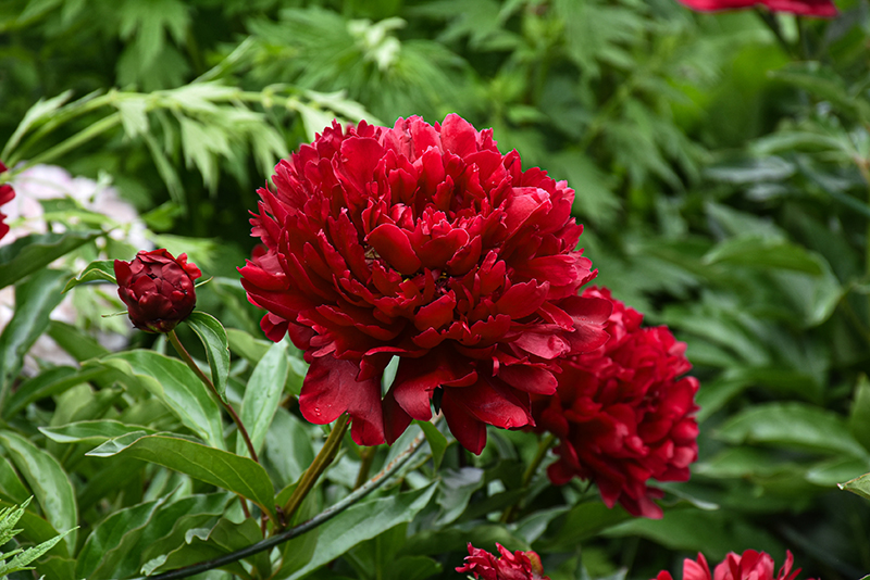 Command Performance Peony features bold lightly-scented double cherry red flowers with pink overtones at the ends of the stems from late spring to early summer. The flowers are excellent for cutting. Its compound leaves remain green in colour throughout the season.