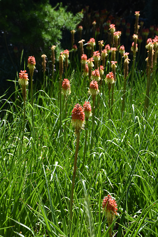 Torchlily is an open herbaceous evergreen perennial with tall flower stalks held atop a low mound of foliage. Its relatively fine texture sets it apart from other garden plants with less refined foliage.