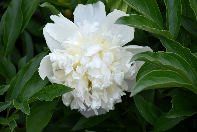 This fine bomb-type peony is a captivating sight when the buds open to reveal elegant white blooms with golden yellow anthers; the fragrant flowers open on stiff stems making them an excellent cut flower; impressive when massed in groupings