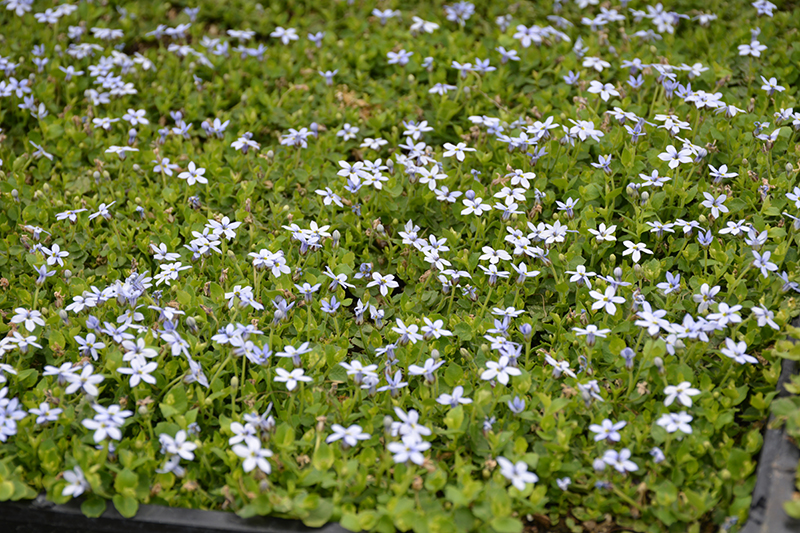 Blue Star Laurentia will grow to be about 12 inches tall at maturity, with a spread of 15 inches. When grown in masses or used as a bedding plant, individual plants should be spaced approximately 12 inches apart. Its foliage tends to remain dense right to the ground, not requiring facer plants in front. Although it's not a true annual, this fast-growing plant can be expected to behave as an annual in our climate if left outdoors over the winter, usually needing replacement the following year. As such, gardeners should take into consideration that it will perform differently than it would in its native habitat.