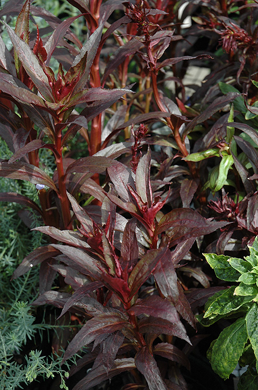 Russian Princess Lobelia features showy spikes of cherry red flowers rising above the foliage from mid summer to early fall. The flowers are excellent for cutting. Its attractive glossy pointy leaves emerge red in spring, turning burgundy in colour throughout the season. The burgundy stems are very colorful and add to the overall interest of the plant.