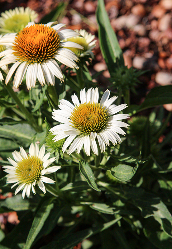 PollyNation™ White Coneflower will grow to be about 20 inches tall at maturity, with a spread of 12 inches. Its foliage tends to remain dense right to the ground, not requiring facer plants in front. It grows at a medium rate, and under ideal conditions can be expected to live for approximately 10 years. As an herbaceous perennial, this plant will usually die back to the crown each winter, and will regrow from the base each spring. Be careful not to disturb the crown in late winter when it may not be readily seen!