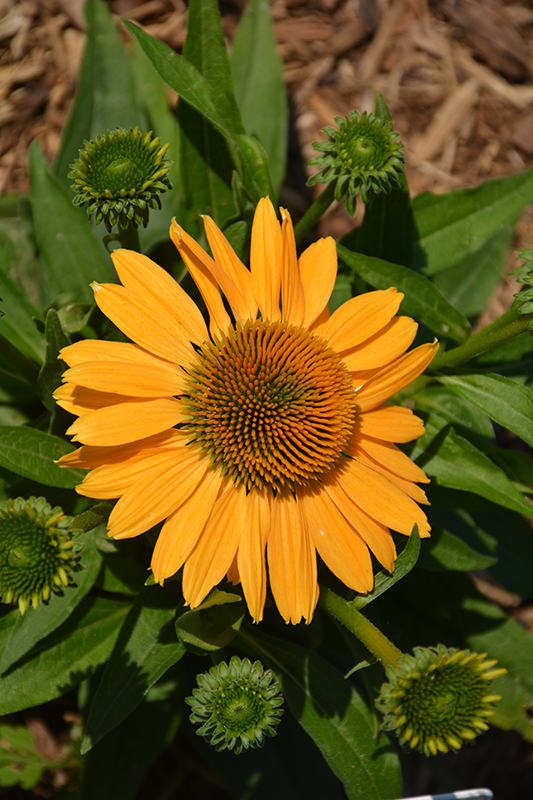 This striking selection produces bright peachy-orange blooms with copper cones; features tight branching and a compact habit; perfect in groups, along border edges, or in containers; great for flower arrangements, attracts pollinators