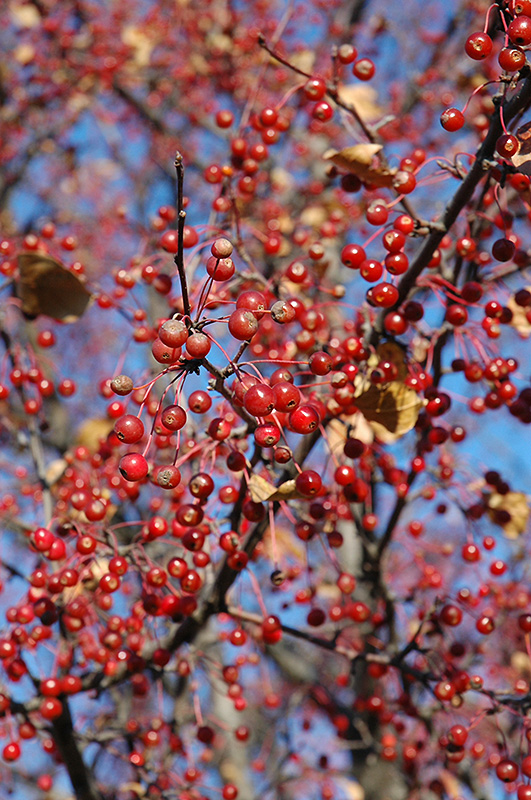 A beautiful accent tree with showy white flowers which emerge from pink buds, an abundance of tiny red fruit in fall, and rich purple-red foliage all season long; use as a color accent tree in the landscape