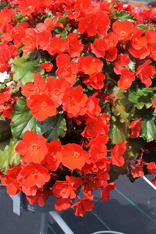 An attractive mounded begonia presenting glossy dark green leaves with toothed edges; pure scarlet, semi-double blooms are produced from early summer to frost; grows well in humid conditions; great for containers, or hanging baskets; shade tolerant