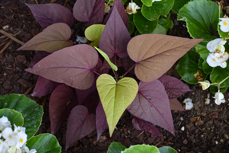 Sweet Georgia® Heart Red Sweet Potato Vine is primarily valued in the garden for its spreading and trailing habit of growth. Its attractive heart-shaped leaves emerge chartreuse in spring, turning brick red in colour with showy burgundy variegation and tinges of coppery-bronze throughout the season.
