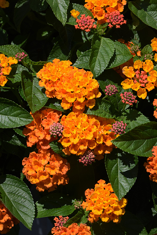 Gem™ Citrine Lantana features showy cymes of gold flowers with coral-pink overtones at the ends of the branches from early summer to mid fall, which emerge from distinctive fuchsia flower buds. Its serrated pointy leaves remain green in colour throughout the year.