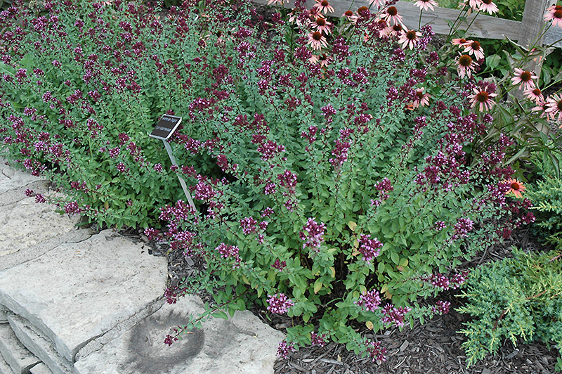 Herrenhausen Oregano features tiny clusters of violet trumpet-shaped flowers rising above the foliage from mid summer to mid fall. The flowers are excellent for cutting. Its small fragrant oval leaves are forest green in colour. As an added bonus, the foliage turns a gorgeous purple in the fall.