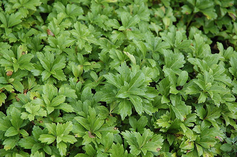 A wonderful groundcover evergreen with deeply cut, almost lacy dark green foliage that's very glossy, pretty white flowers in early spring; loves shade, does well beneath mature trees, prefers highly organic acidic soils, benefits from snowcover in winter
