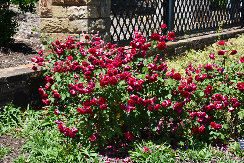 Dark green foliage sets the stage for deep crimson red blooms to shine; nearly thornless, compact bushy habit; blooms in flushes throughout the season; great for garden beds, borders and hedges; excellent quality for fresh cut flower displays