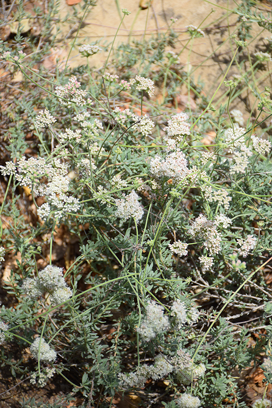 Interior California Buckwheat features showy clusters of white flowers rising above the foliage from early spring to late summer. The flowers are excellent for cutting. It has grayish green deciduous foliage. The tiny narrow leaves do not develop any appreciable fall colour.