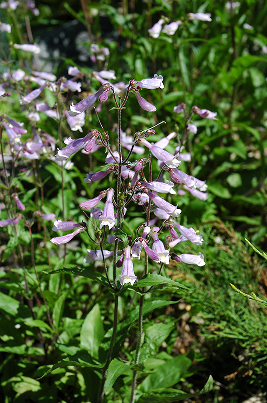 Calico Beardtongue has masses of beautiful spikes of lavender tubular flowers with violet overtones and white throats rising above the foliage from late spring to early summer, which are most effective when planted in groupings. The flowers are excellent for cutting. Its glossy narrow leaves are forest green in colour. The foliage often turns scarlet in fall. The deep purple stems are very colorful and add to the overall interest of the plant.