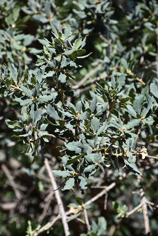 Blue Oak has attractive grayish green foliage with hints of silvery blue on a tree with an upright spreading habit of growth. The small serrated oval leaves are highly ornamental and turn outstanding shades of pink, yellow and orange in the fall. It produces light green acorns from late summer to mid fall, which fade to brown over time. The fruit can be messy if allowed to drop on the lawn or walkways, and may require occasional clean-up. The furrowed gray bark adds an interesting dimension to the landscape.