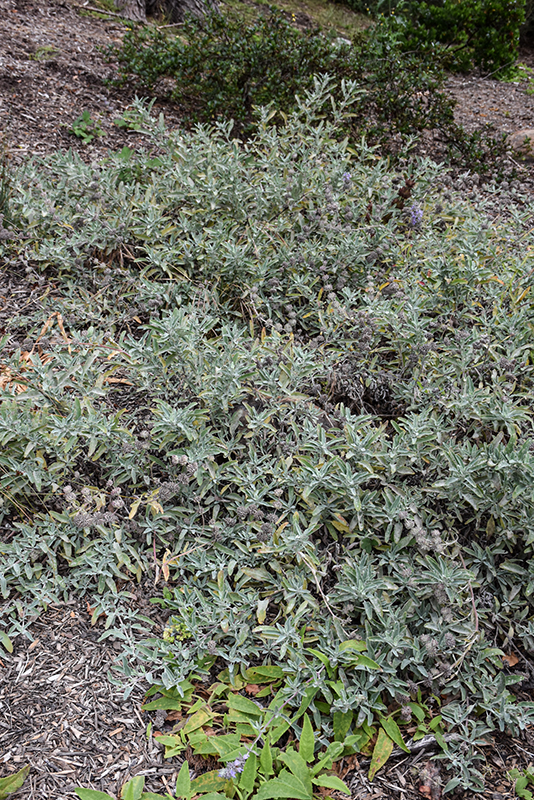 Sonoma Sage will grow to be only 6 inches tall at maturity extending to 14 inches tall with the flowers, with a spread of 5 feet. When grown in masses or used as a bedding plant, individual plants should be spaced approximately 18 inches apart. Its foliage tends to remain low and dense right to the ground. Although it's not a true annual, this fast-growing plant can be expected to behave as an annual in our climate if left outdoors over the winter, usually needing replacement the following year. As such, gardeners should take into consideration that it will perform differently than it would in its native habitat.