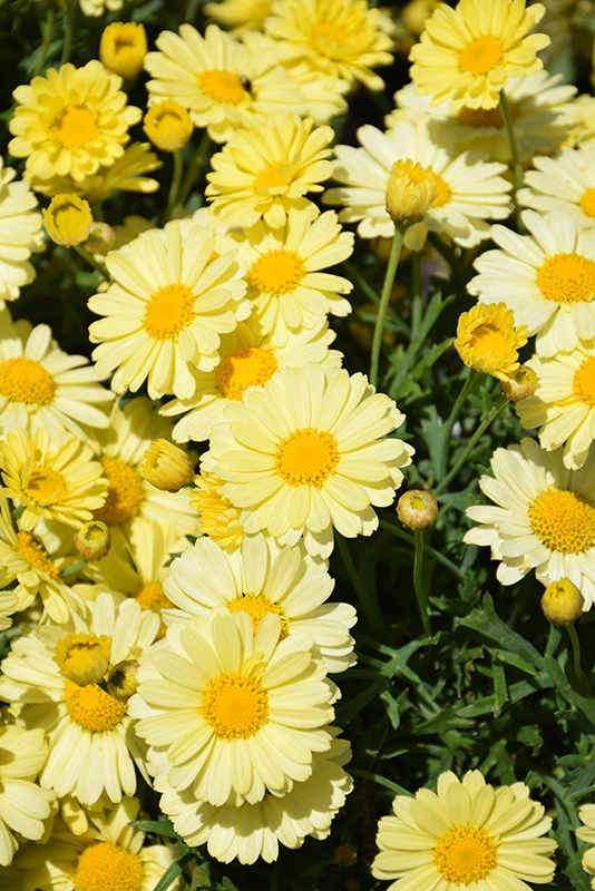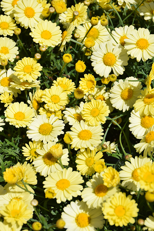 Lollies™ Buttermint Marguerite Daisy has masses of beautiful yellow daisy flowers with white overtones and a buttery yellow flare at the ends of the stems from late spring to early fall, which are most effective when planted in groupings. The flowers are excellent for cutting. Its tiny deeply cut ferny leaves remain dark green in colour throughout the season.