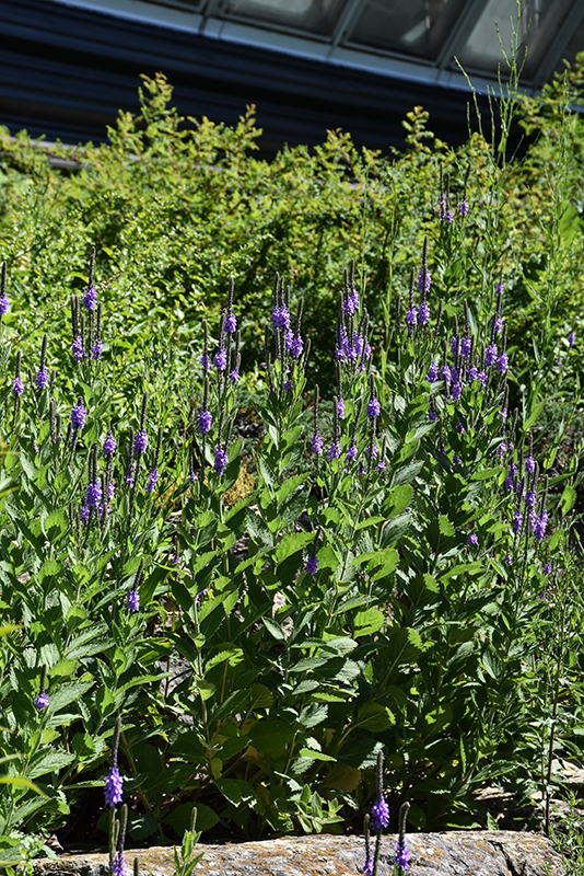 Hoary Vervain will grow to be about 24 inches tall at maturity extending to 4 feet tall with the flowers, with a spread of 24 inches. When grown in masses or used as a bedding plant, individual plants should be spaced approximately 18 inches apart. Its foliage tends to remain dense right to the ground, not requiring facer plants in front. It grows at a fast rate, and under ideal conditions can be expected to live for approximately 5 years. As an herbaceous perennial, this plant will usually die back to the crown each winter, and will regrow from the base each spring. Be careful not to disturb the crown in late winter when it may not be readily seen!