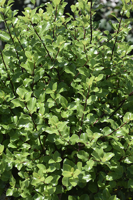 Wrinkled Blue Pittosporum has attractive grayish green foliage with hints of silvery blue on a plant with an upright spreading habit of growth. The glossy oval leaves are highly ornamental and remain grayish green throughout the winter. The black branches are extremely showy and add significant winter interest.