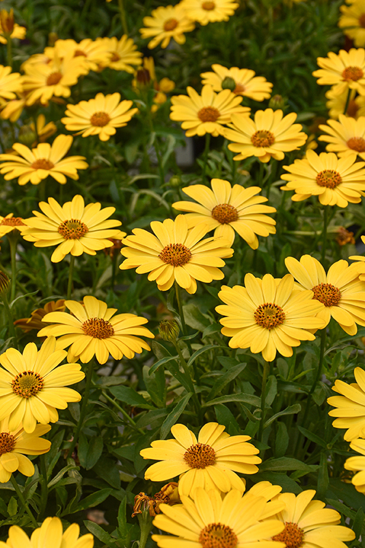 Serenity™ Deep Yellow African Daisy is covered in stunning yellow daisy flowers with gold overtones and dark brown centers at the ends of the stems from mid spring to early fall. The flowers are excellent for cutting. Its narrow leaves remain green in colour throughout the season.
