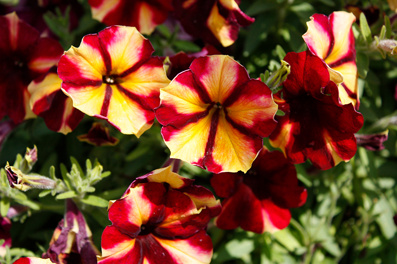 Crazytunia® Tiki Torch Petunia is a fine choice for the garden, but it is also a good selection for planting in outdoor containers and hanging baskets. It is often used as a 'filler' in the 'spiller-thriller-filler' container combination, providing a mass of flowers against which the thriller plants stand out. Note that when growing plants in outdoor containers and baskets, they may require more frequent waterings than they would in the yard or garden.