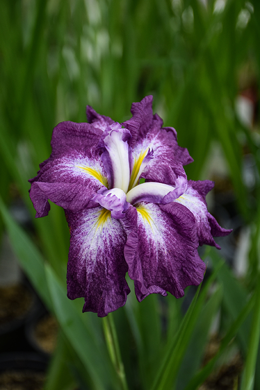 Dinner Plate™ Cheesecake Japanese Iris has masses of beautiful white flag-like flowers with purple overtones and yellow throats at the ends of the stems in early summer, which are most effective when planted in groupings. The flowers are excellent for cutting. Its sword-like leaves remain green in colour throughout the season.