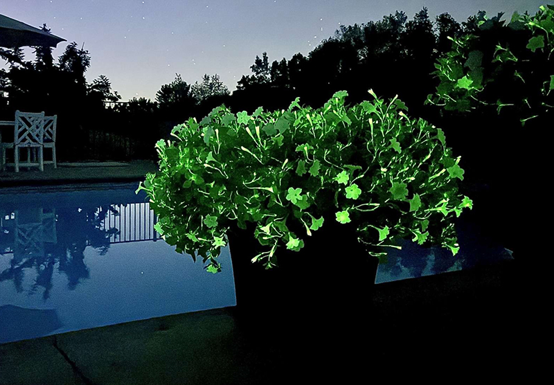 A breakthrough in biotechnology, this bioluminescent plant emits a soft glow similar to moonlight in the dark; forms a mound with abundant white flowers; can also be grown indoors with sufficient light; needs no special conditions or treatments to glow