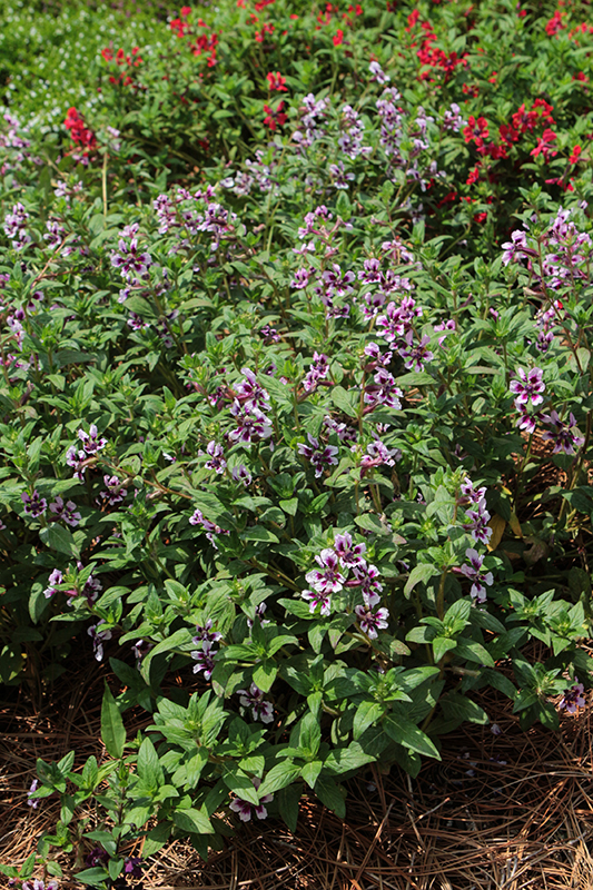 Small, freely branching shrub or subshrub presenting unusual violet-purple tubular flowers with blush pink tips; great for bedding, shrub borders, and containers in warm climates; continuous blooming from spring to fall; great for attracting pollinators