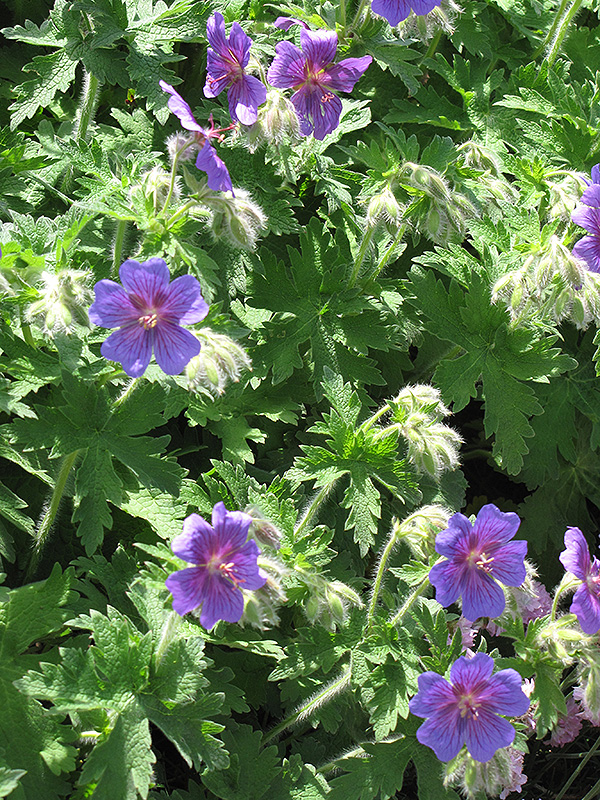 Rossemoor Cranesbill will grow to be about 24 inches tall at maturity, with a spread of 24 inches. When grown in masses or used as a bedding plant, individual plants should be spaced approximately 20 inches apart. Its foliage tends to remain dense right to the ground, not requiring facer plants in front. It grows at a medium rate, and under ideal conditions can be expected to live for approximately 10 years. As an herbaceous perennial, this plant will usually die back to the crown each winter, and will regrow from the base each spring. Be careful not to disturb the crown in late winter when it may not be readily seen!