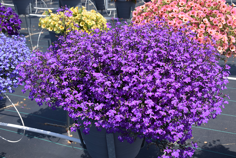 Techno® Large Blue Violet Lobelia is a fine choice for the garden, but it is also a good selection for planting in hanging baskets. Because of its trailing habit of growth, it is ideally suited for use as a 'spiller' in the 'spiller-thriller-filler' container combination; plant it near the edges where it can spill gracefully over the pot. Note that when growing plants in outdoor containers and baskets, they may require more frequent waterings than they would in the yard or garden.