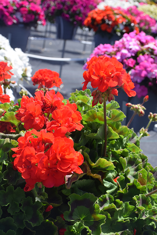 Calliope® Medium Scarlet Geranium is a fine choice for the garden, but it is also a good selection for planting in outdoor containers and hanging baskets. It is often used as a 'filler' in the 'spiller-thriller-filler' container combination, providing a mass of flowers against which the larger thriller plants stand out. Note that when growing plants in outdoor containers and baskets, they may require more frequent waterings than they would in the yard or garden.